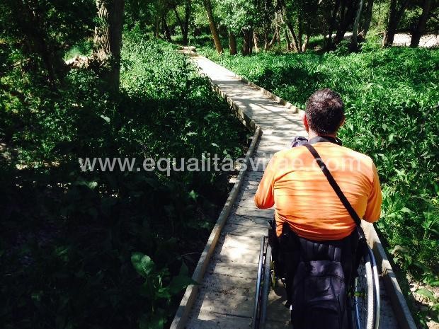 Mirador del Soto de la Nava : il y a des panneaux informatifs consultable depuis une personne assise dans un fauteuil roulant, mais il n'y a pas d'informations en braille ou en relief, c'est un espace clos avec des bancs en bois, le sol est en terre compactée ce qui peut poser des problèmes en cas de pluie.