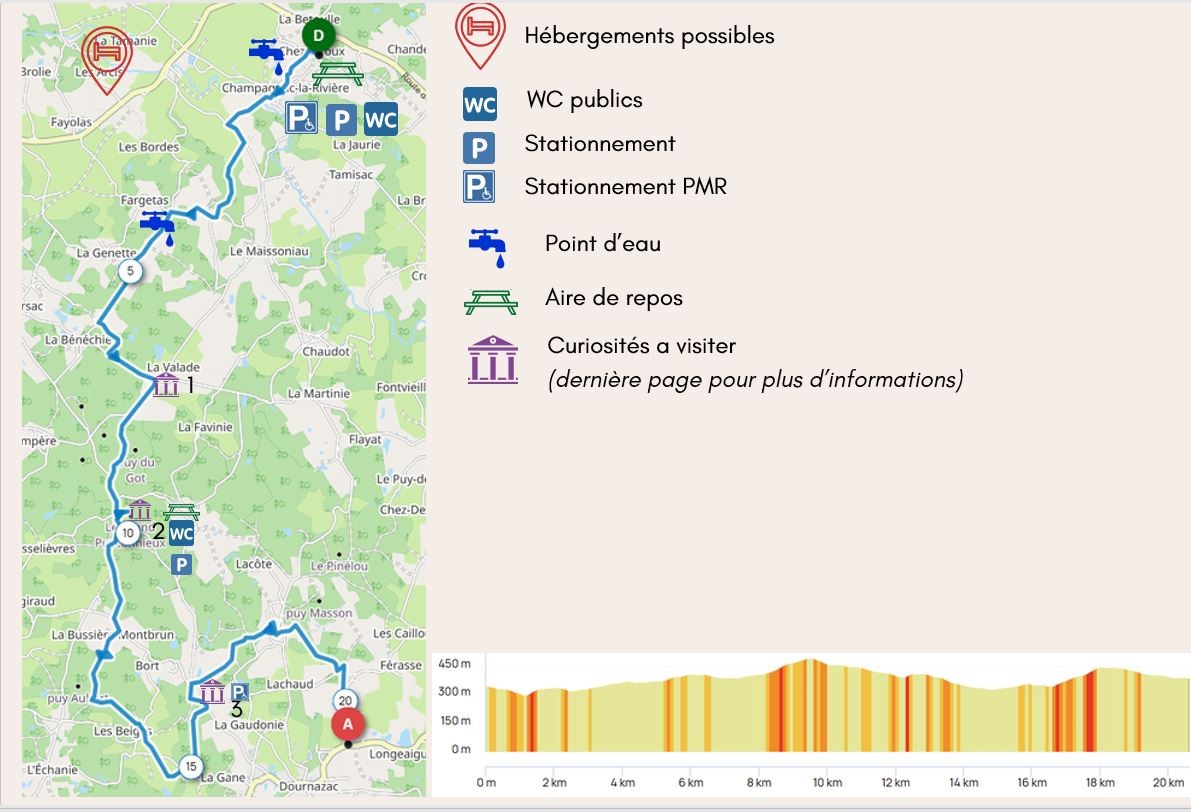 Jour 1 : Déposez votre voiture à Châlus pour prendre le bus direction Champagnac. Partez à la découverte du petit village de 590 habitants. Logez sur Châlus à la résidence Loanie ou à l’Appartement du Lac (labellisé tourisme et handicap).