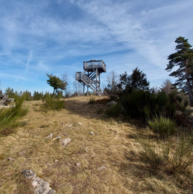 Le belvédère du Truc de l’Homme (Les Bessons) : Depuis l'observatoire vous pourrez admirer une vue à 180° sur les monts d'Aubrac, de la Margeride et apercevoir le Plomb du Cantal.