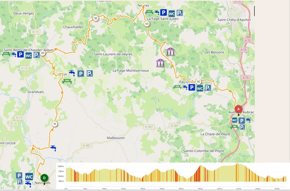 Jour 1 : Déposer votre voiture à Peyre. Prendre la ligne Compostel’bus en direction de Conques. Le buspart à 9h de Peyre et vous déposera 25 min plus tard à Nasbinals. C’est parti pour 15 km, 200 mde dénivelé en direction de Brion.A Brion, vous pouvez loger dans des gites dans le centre de Brion (non accessible PMR).